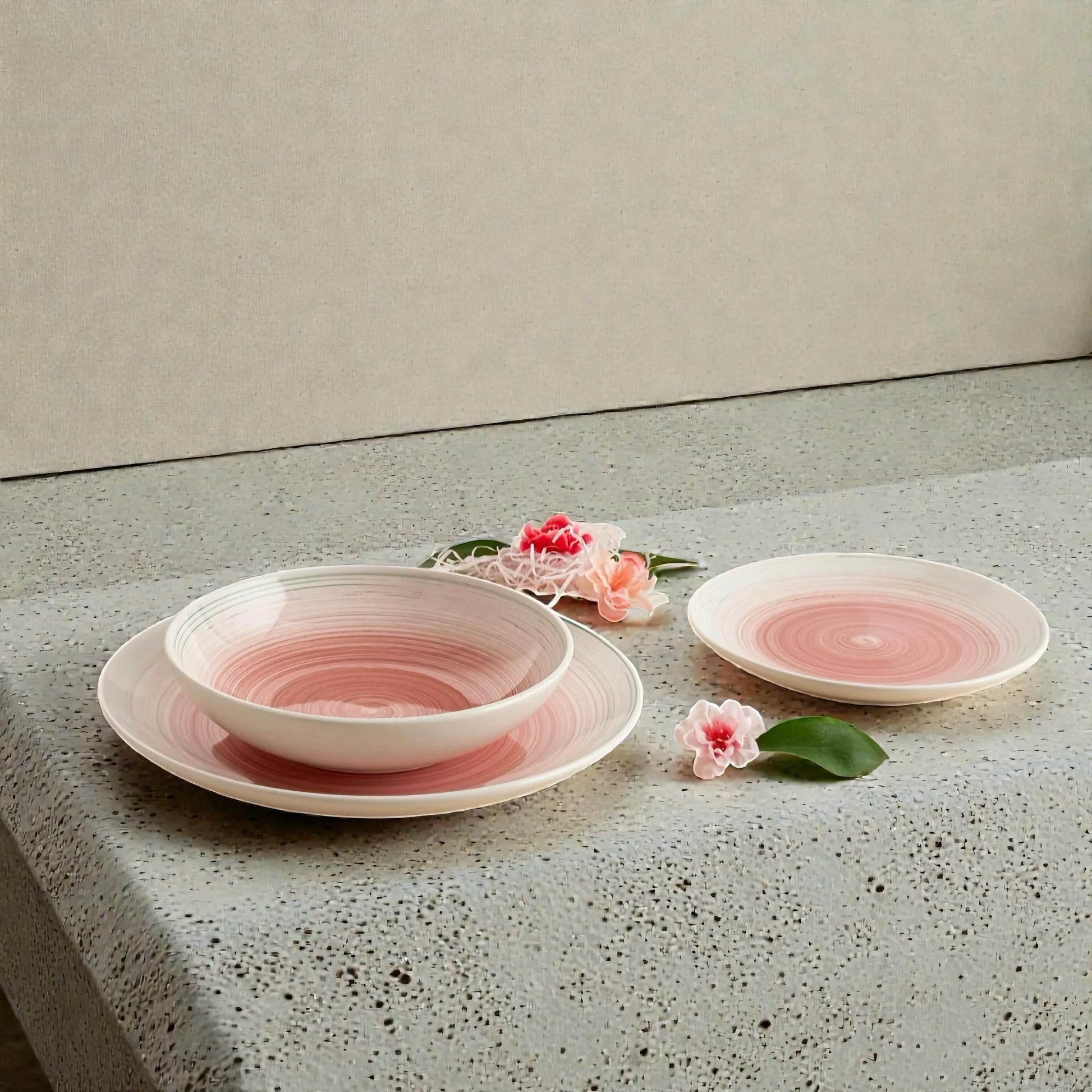 The Velvet set brings a soft, tactile experience to an elegantly set table. The collection combines a handcrafted character with the subtle color nuances of hand-painted ceramics. The interplay of soft hues and a decorated gloss finish gives each piece a natural tranquility, perfectly harmonizing with the wabi-sabi philosophy.